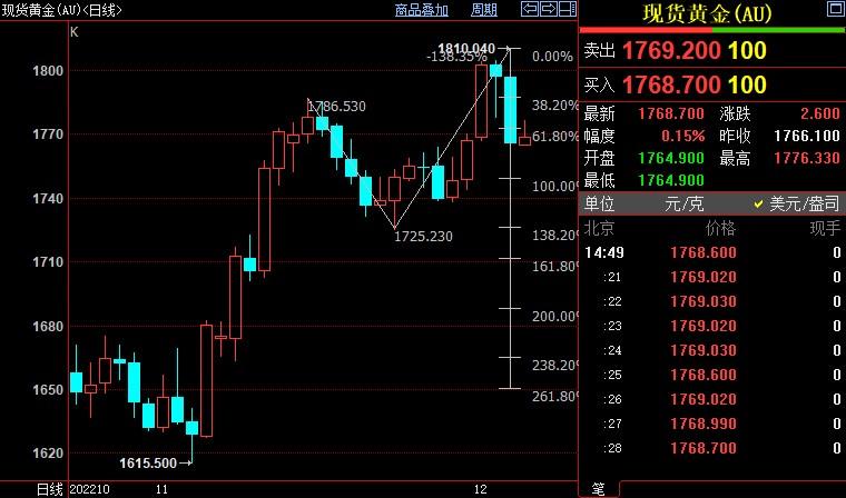 汇通财经APP讯——周二(12月6日),国际金价冲高回落,有望延续隔夜逾1.6%的跌势,受美元反弹带来的压力。需求强于预期的任何迹象,可能导致市场重新审视美联储政策预期。金价后市下看1758美元。北京...