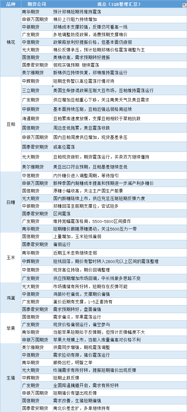 汇通财经APP讯——期货公司观点汇总一张图:12月6日农产品(棉花、豆粕、白糖、玉米、鸡蛋、生猪等)