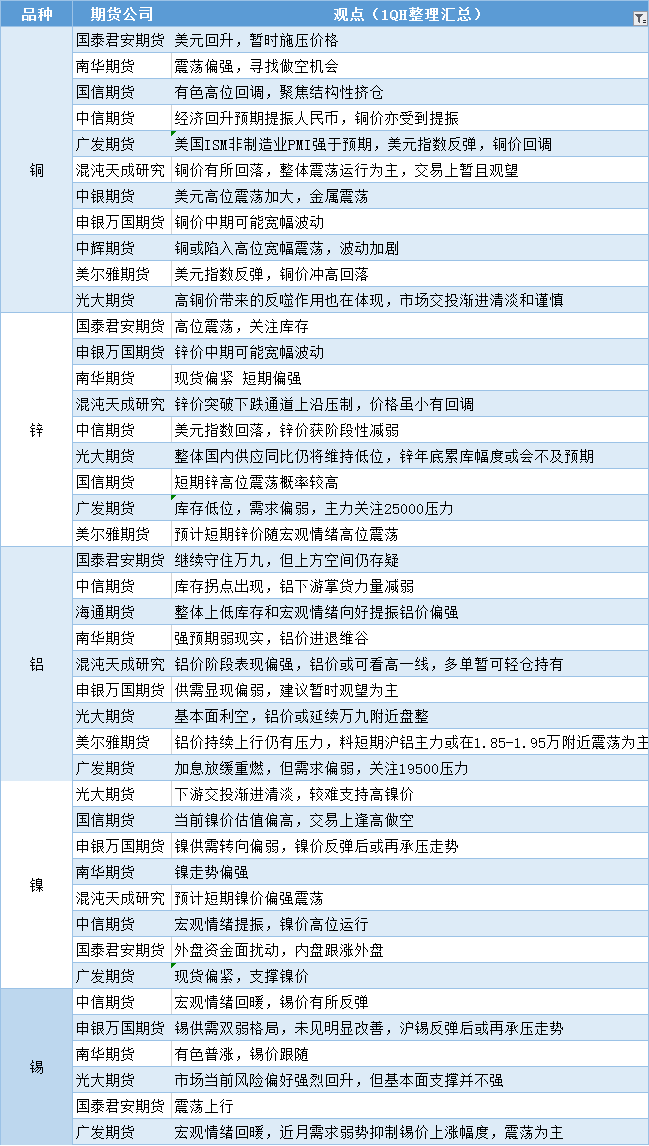 汇通财经APP讯——期货公司观点汇总一张图:12月6日有色系(铜、锌、铝、镍、锡等)