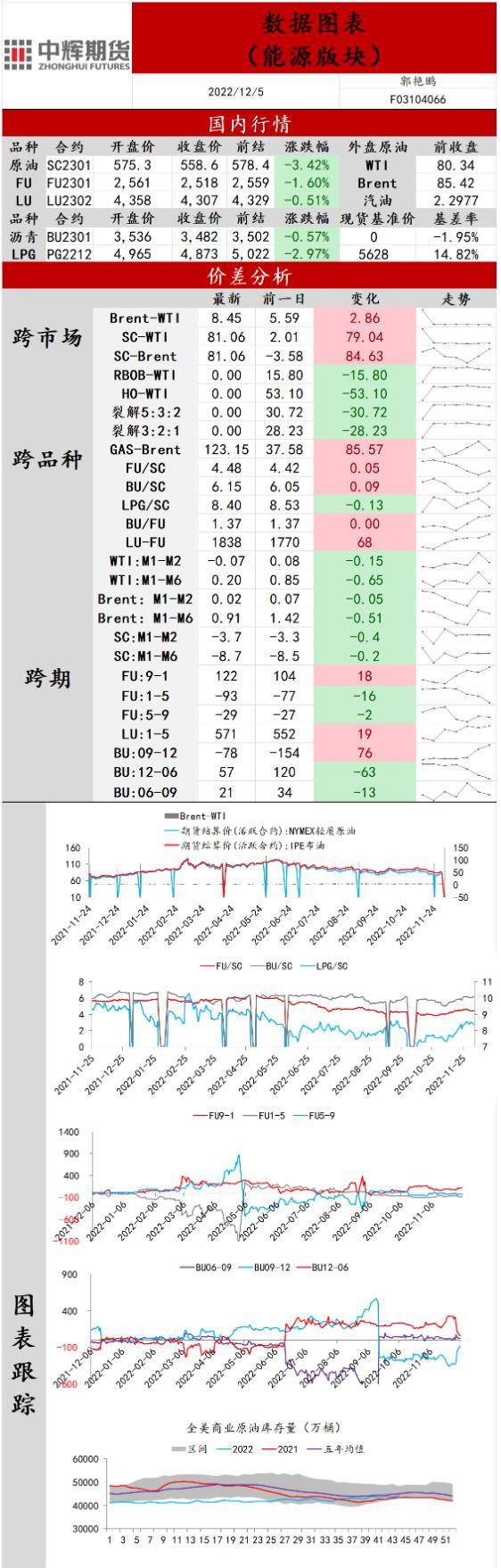 汇通财经APP讯——【能源化工】-原油行情解读:今日内盘原油保有所回落,OPEC+产能政策和G7对俄罗斯原油限价两大不确定因素落地,市场反映较为平淡,内盘原油价格收于558.6元/桶,降幅为3.42%...