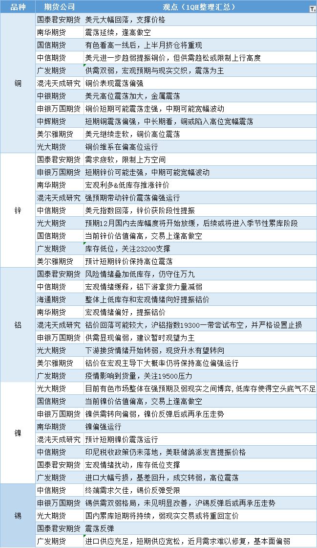 汇通财经APP讯——期货公司观点汇总一张图:12月2日有色系(铜、锌、铝、镍、锡等)