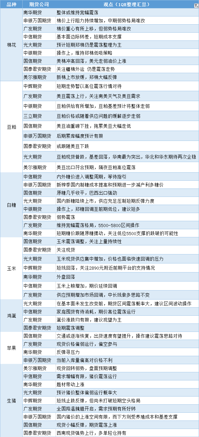 汇通财经APP讯——期货公司观点汇总一张图:12月2日农产品(棉花、豆粕、白糖、玉米、鸡蛋、生猪等)