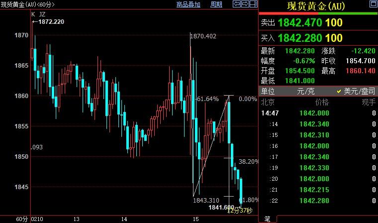 汇通财经APP讯——周三(2月15日),国际金价重新走低,创1月6日以来新低至1842.78美元/盎司,因数据显示上月美国通胀下降势头放缓,加剧了投资者对美联储将坚持货币政策从紧的担忧。金价后市下看1...