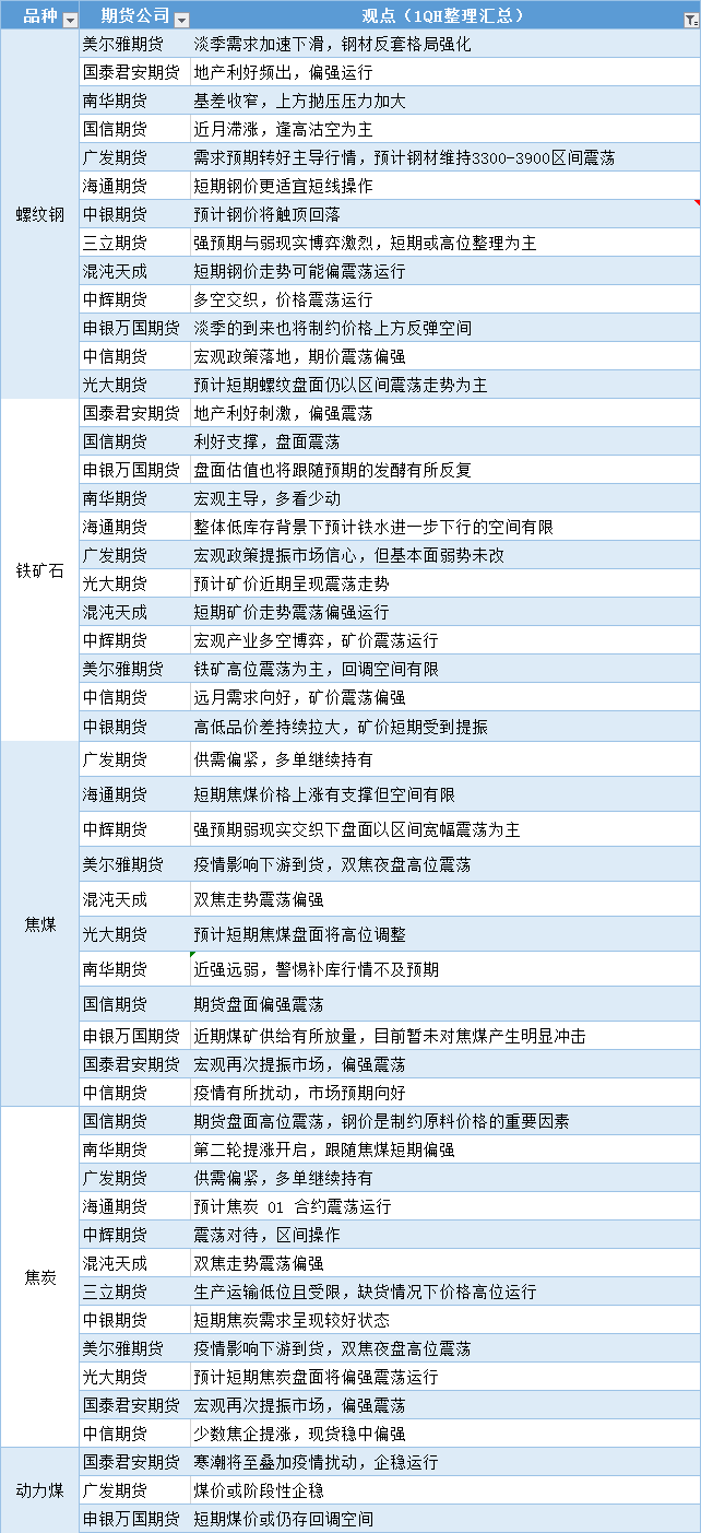 汇通财经APP讯——期货公司观点汇总一张图:11月30日黑色系(螺纹钢、焦煤、焦炭、铁矿石、动力煤等)