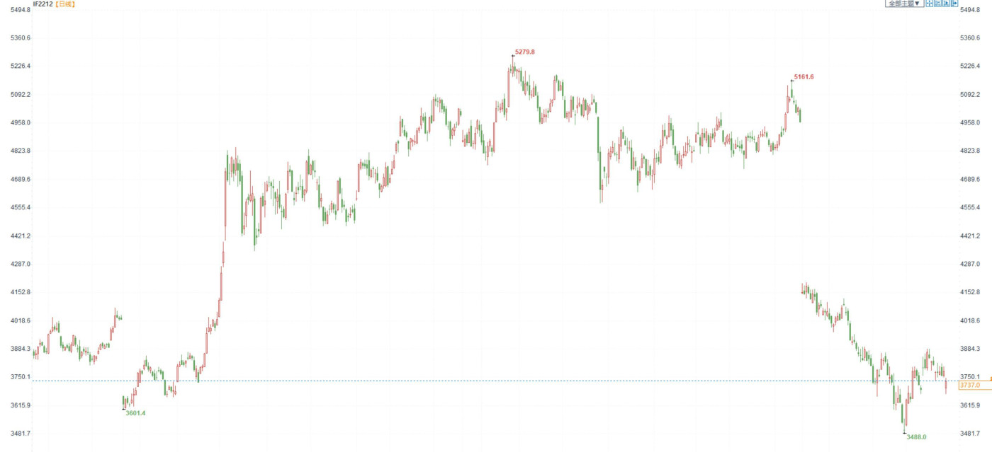 股指期货:市场全天震荡上行,但未能回补跳空缺口 【今日涨跌】四大期指全线收跌。IH2212收盘价为2505.4,收跌1.77%;IF2212收盘价为3737.0,收跌1.30%;IC2212收盘价为6...