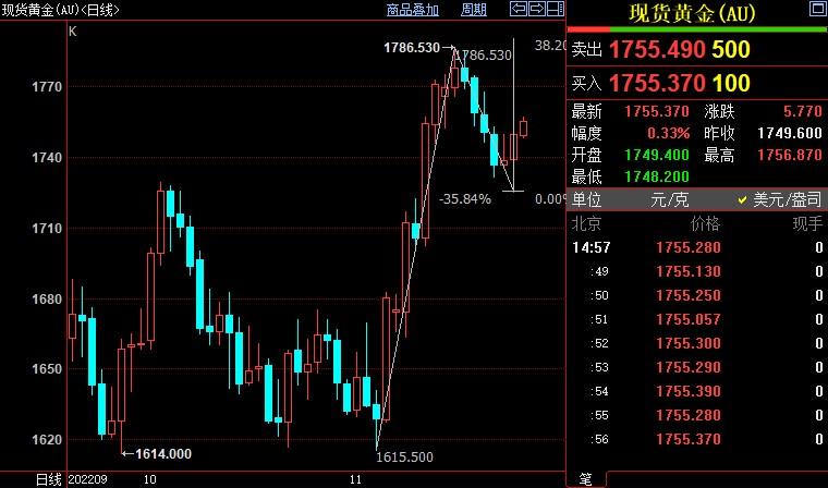 周四(11月24日),国际金价巩固先前涨幅,反弹至1750美元上方。美联储11月政策会议纪要暗示未来加息放缓,金价后市上看1766美元。北京时间15:00,现货黄金上涨0.35%至1755.39美元/...
