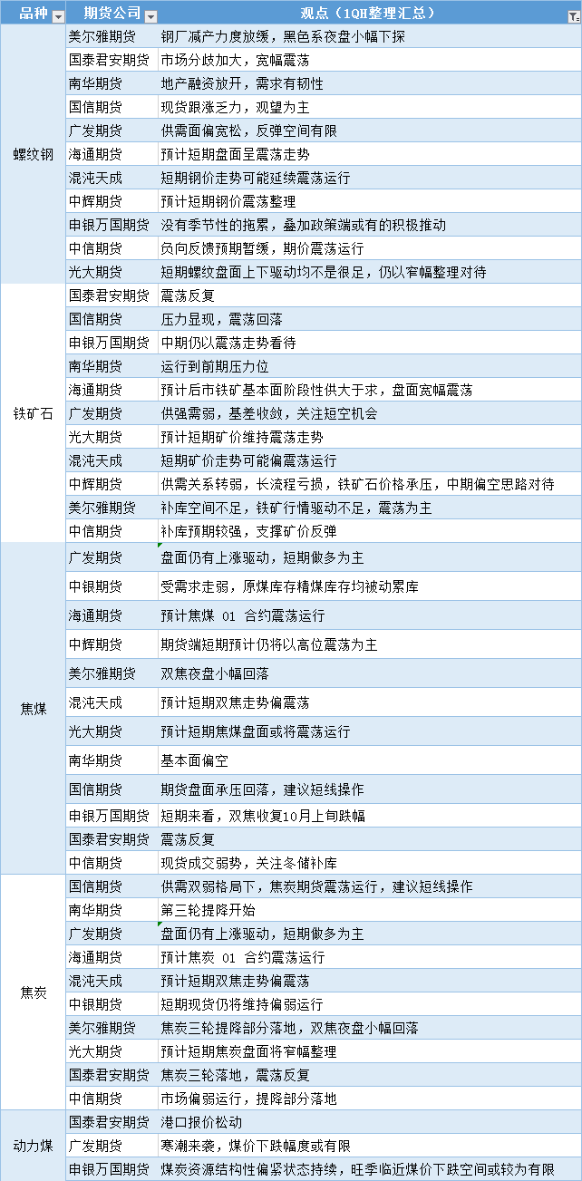 期货公司观点汇总一张图:11月10日黑色系(螺纹钢、焦煤、焦炭、铁矿石、动力煤等)