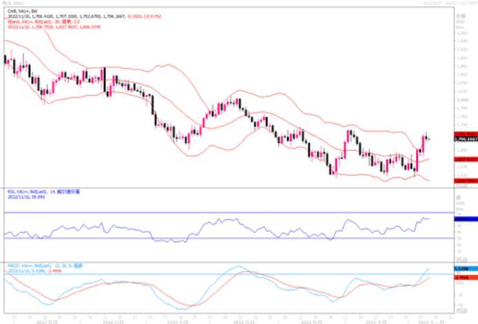 周三,美市尾盘,现货黄金收报1706.91美元/盎司,小幅下跌5.24美元或0.31%,日内最高触及1722.25美元/盎司,最低触及1702.30美元/盎司。交易员等待即将公布的通胀数据和美国中期选...