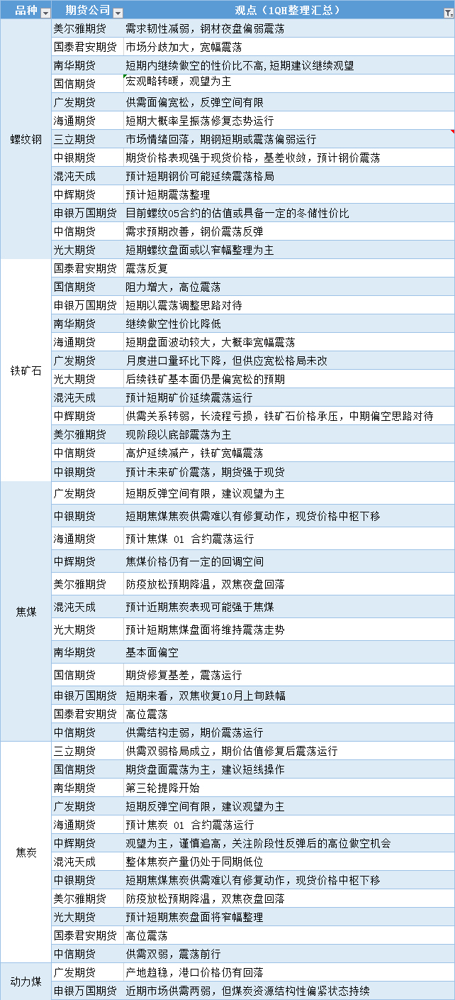 期货公司观点汇总张图:11月8日黑色系(螺纹钢、焦煤、焦炭、铁矿石、动力煤等)