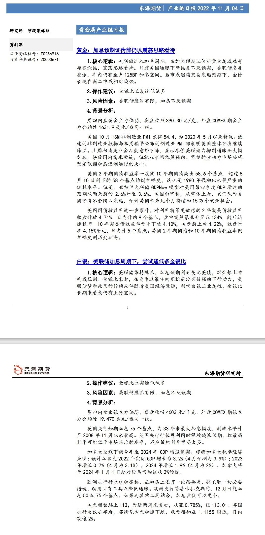 贵金属:加息终点更高持续更久 金银仍然承压;周四,黄金白银期货震荡下跌。截至14:30,沪金主力合约AU2212暂报391.04元/克,下跌0.20%,沪银主力合约AG2212暂报4570元/千克,下...