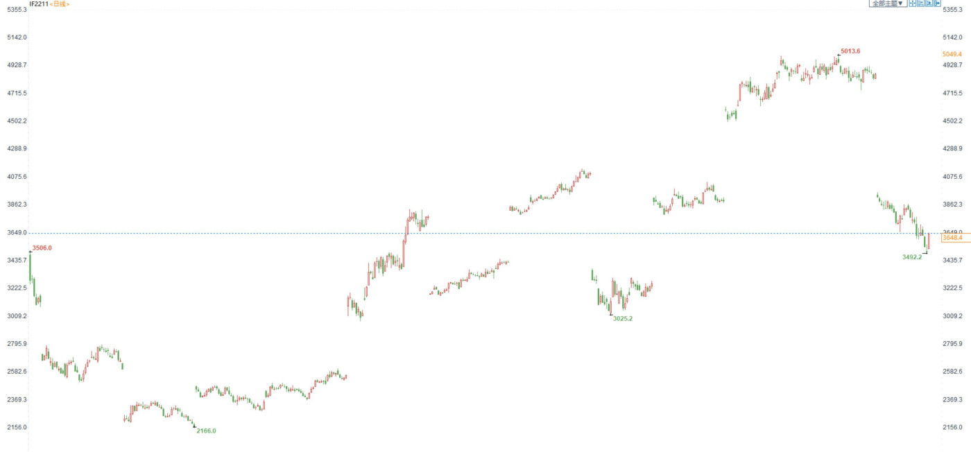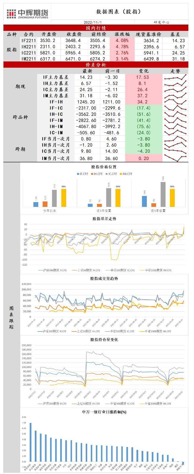 股指期货:11月市场开门红,期指全线大涨 【今日行情】四大期指全线收涨。IH2211收盘价为2403.2,大幅收涨2.78%;IF2211收盘价为3648.4,大涨4.08%;IC2211收盘价为59...