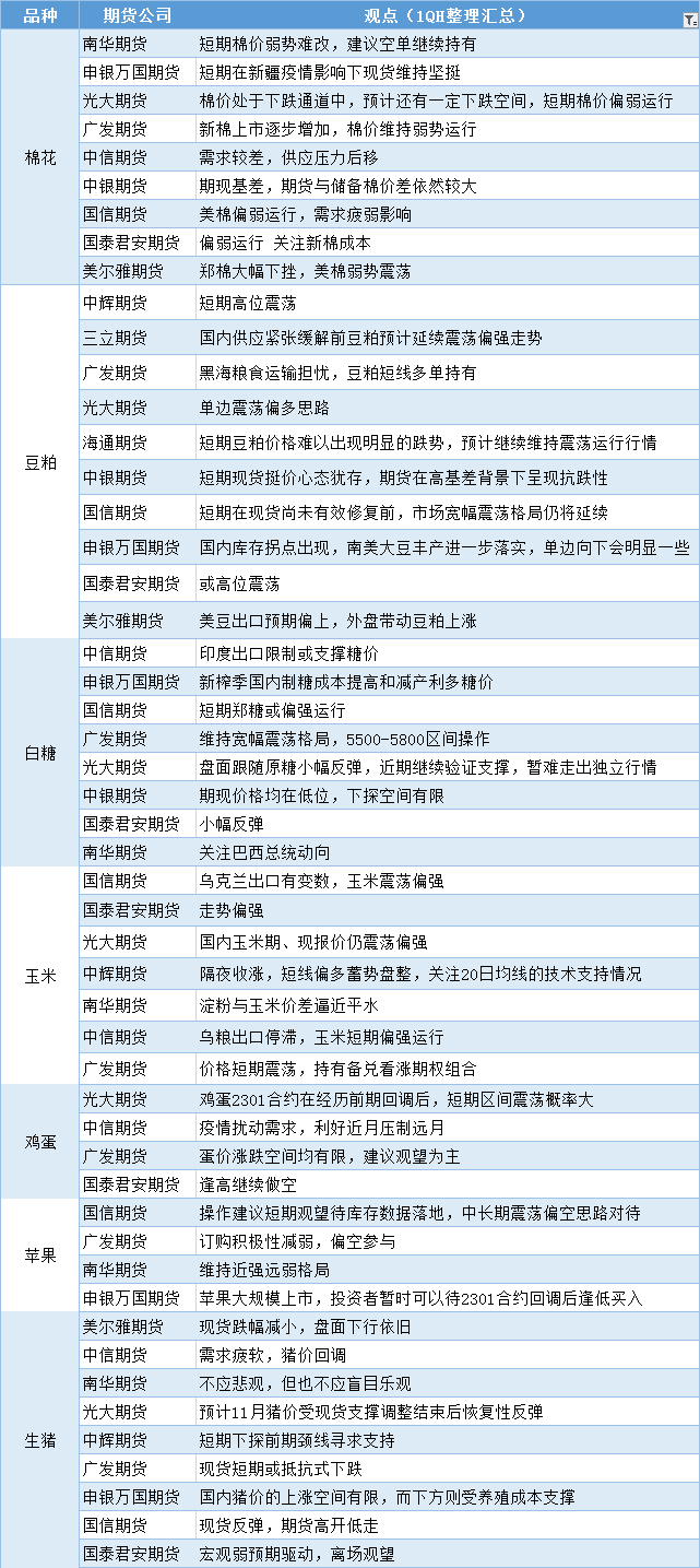 期货公司观点汇总一张图:11月1日农产品(棉花、豆粕、白糖、玉米、鸡蛋、生猪等)