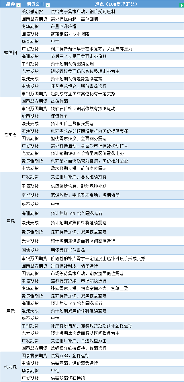 汇通财经APP讯——期货公司观点汇总一张图:2月2日黑色系(螺纹钢、焦煤、焦炭、铁矿石、动力煤等)