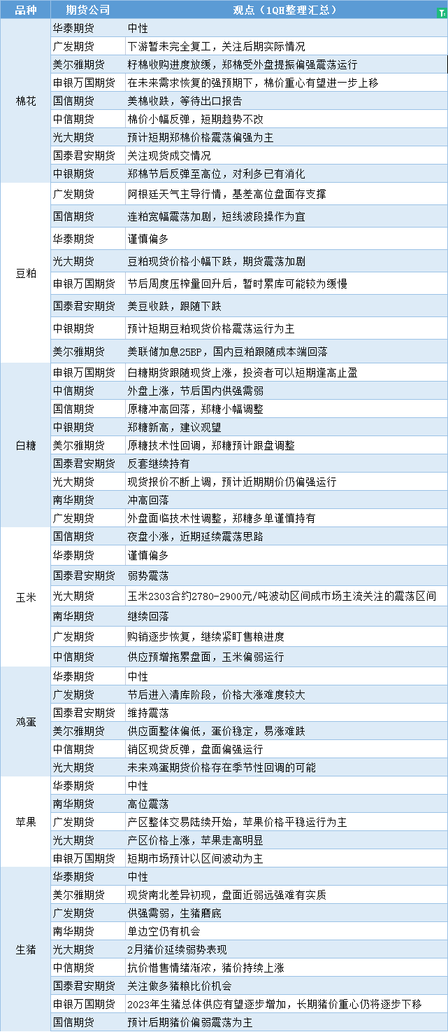 汇通财经APP讯——期货公司观点汇总一张图:2月2日农产品(棉花、豆粕、白糖、玉米、鸡蛋、生猪等)