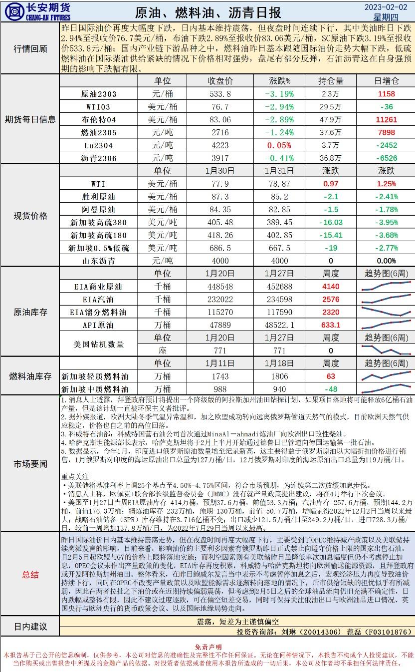 汇通财经APP讯——2月2日,长安期货发布原油早评,认为原油将将震荡,建议短差为主谨慎偏空。长安期货公司授权文本由“专注期货开户交易及专业行情分析资讯网站”:【一期货 www.1qh.cn】转发