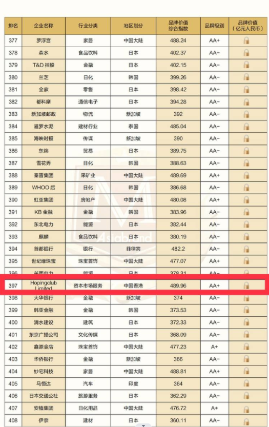 任何行业企业都很关注如何才能够将自身壮大发展起来,能够做到这一点的企业也会被外界所瞩目,而这样的企业有机会进入亚洲品牌500强排行榜单中,“Hoping club华英会”在金融领域中的能力表现是获得了...