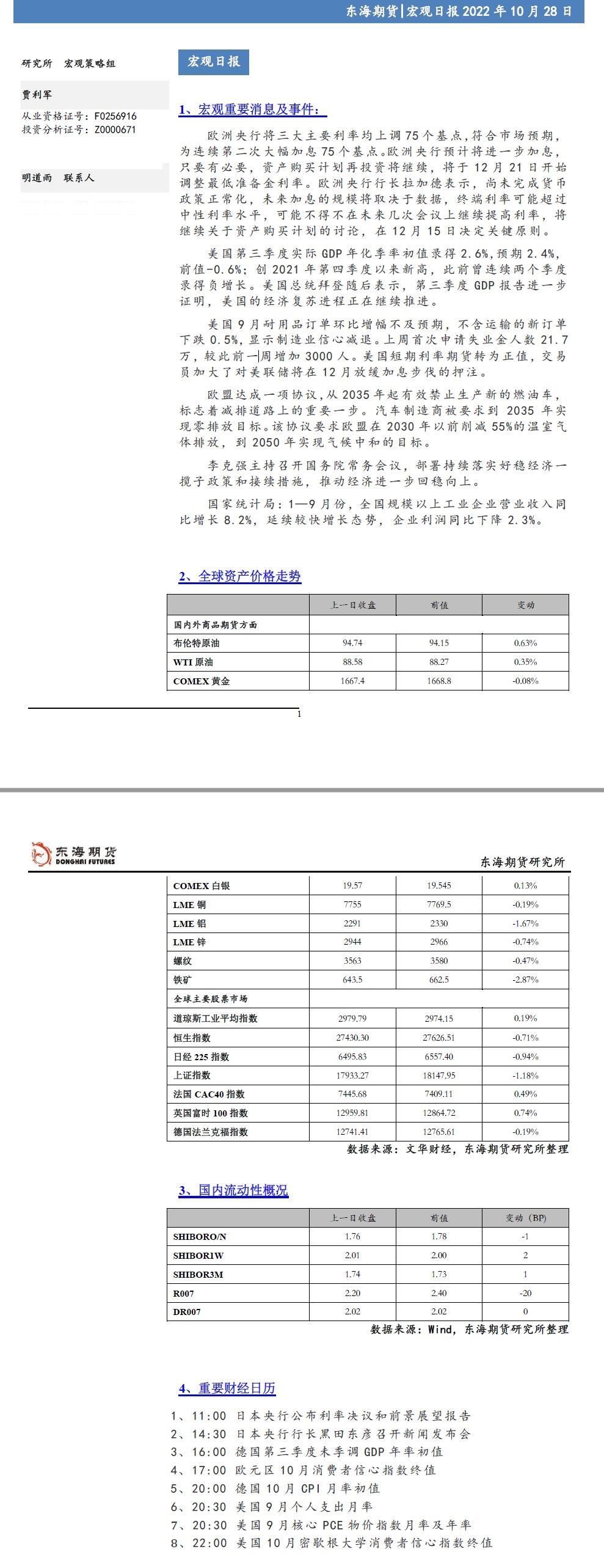 10月31日-11月4日当周,投资者需要关注的重点数据包括欧元区10月CPI ,美国10月芝加哥PMI,美国10月Markit制造业PMI终值,美国10月ADP就业人数,美国截至10月28日当周API...