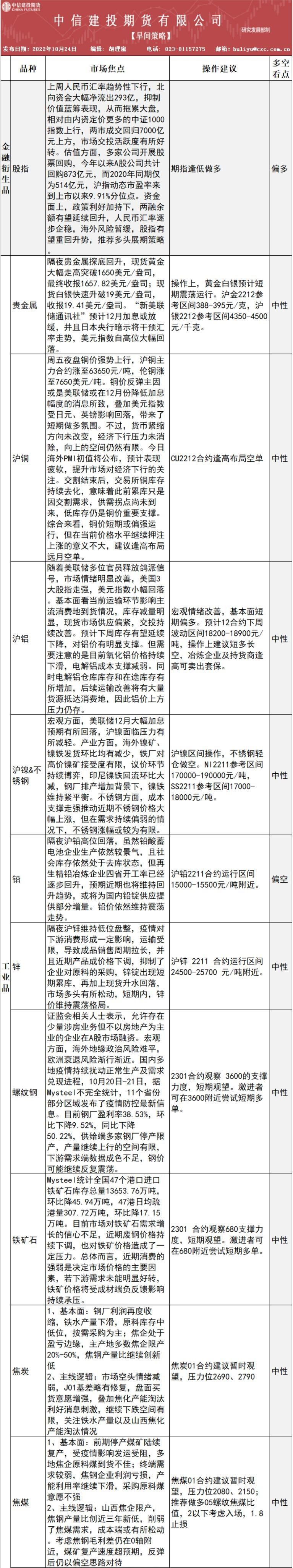 宏观方面,美联储12月大幅加息 预期有所回落,沪镍面临压力有 所减轻。产业方面,海外镍矿、 镍铁发货环比均有减少,铁厂对 高价镍矿接受度有限,议价环节 持续博弈,印尼镍铁回流环比大 减,钢厂排产增加背...
