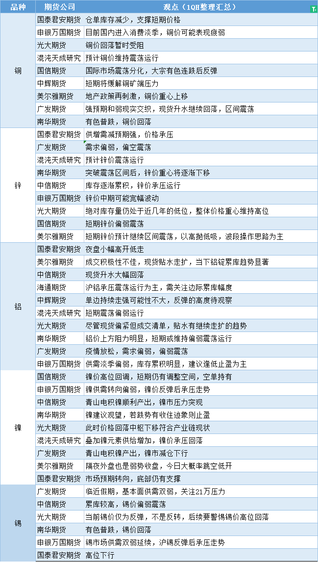 汇通财经APP讯——期货公司观点汇总一张图:1月6日有色系(铜、锌、铝、镍、锡等)