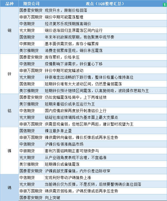 汇通财经APP讯——期货公司观点汇总一张图:1月3日有色系(铜、锌、铝、镍、锡等)