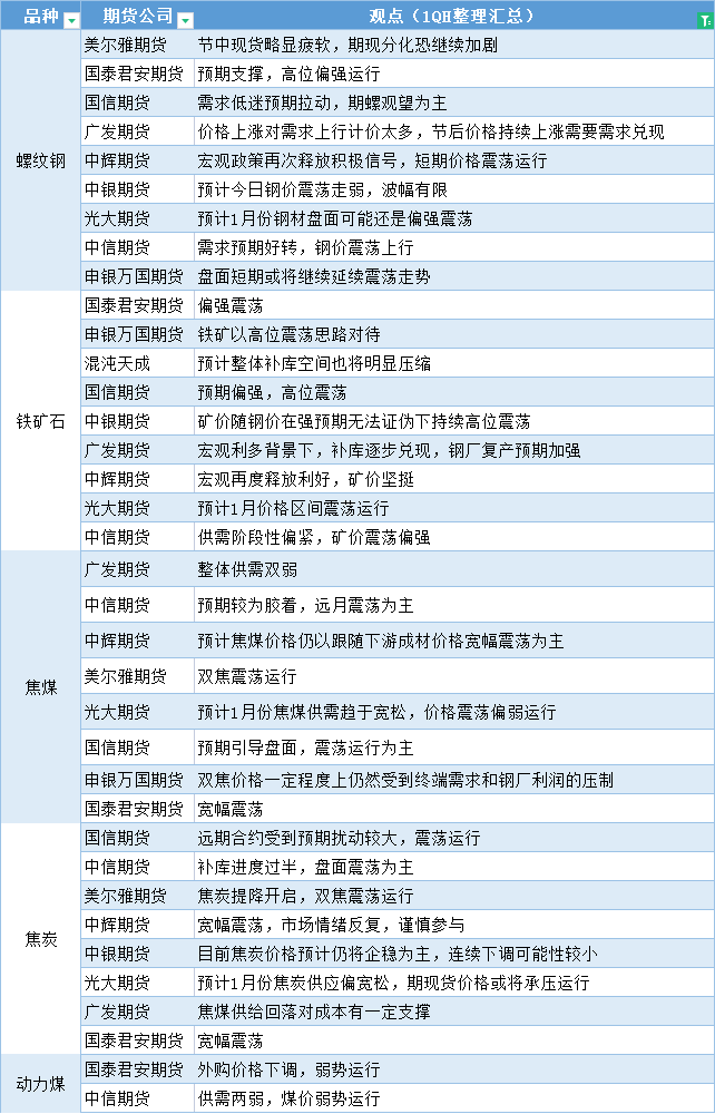 汇通财经APP讯——期货公司观点汇总一张图:1月3日黑色系(螺纹钢、焦煤、焦炭、铁矿石、动力煤等)
