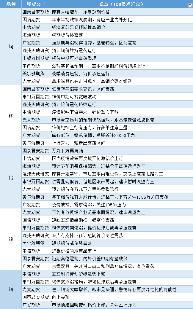 汇通财经APP讯——期货公司观点汇总一张图:12月30日有色系(铜、锌、铝、镍、锡等)
