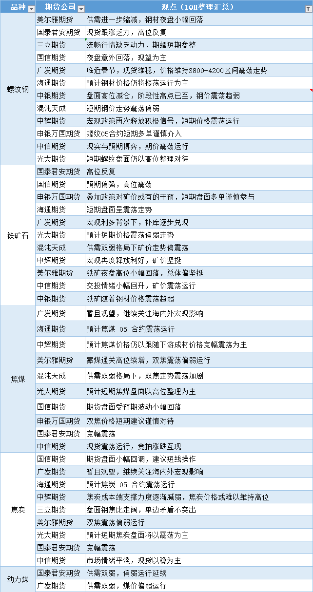 汇通财经APP讯——期货公司观点汇总一张图:12月29日黑色系(螺纹钢、焦煤、焦炭、铁矿石、动力煤等)