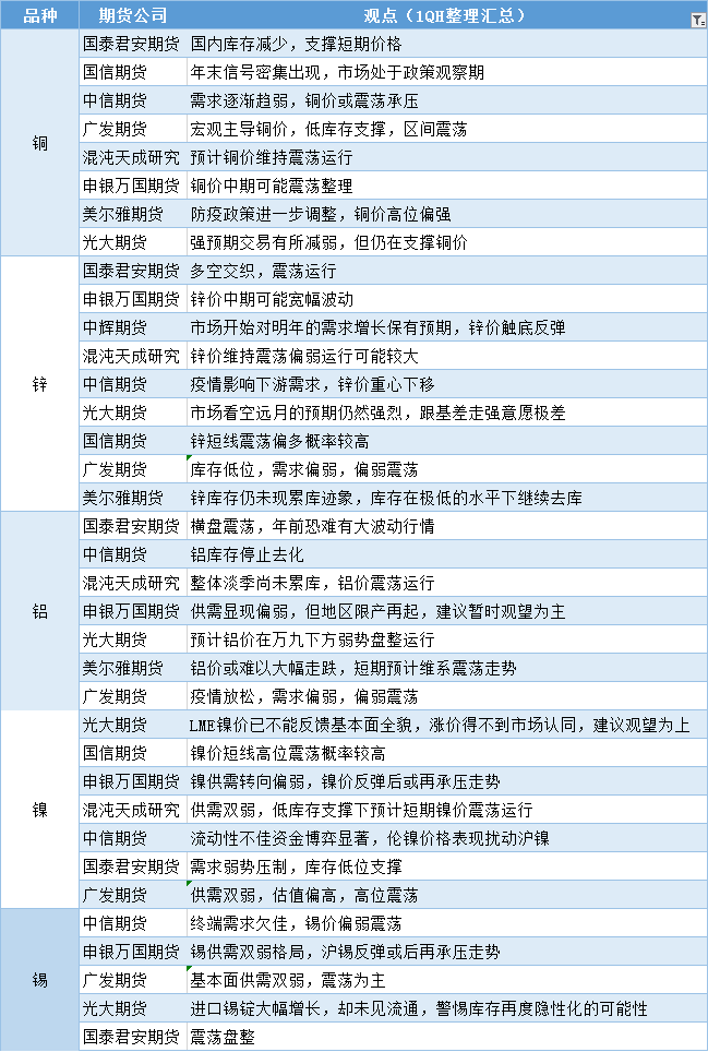 汇通财经APP讯——期货公司观点汇总一张图:12月27日有色系(铜、锌、铝、镍、锡等)
