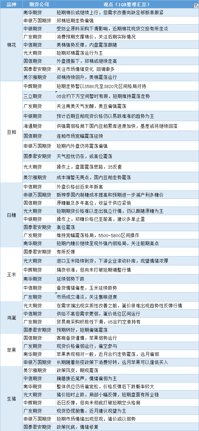 汇通财经APP讯——期货公司观点汇总一张图:12月22日农产品(棉花、豆粕、白糖、玉米、鸡蛋、生猪等)