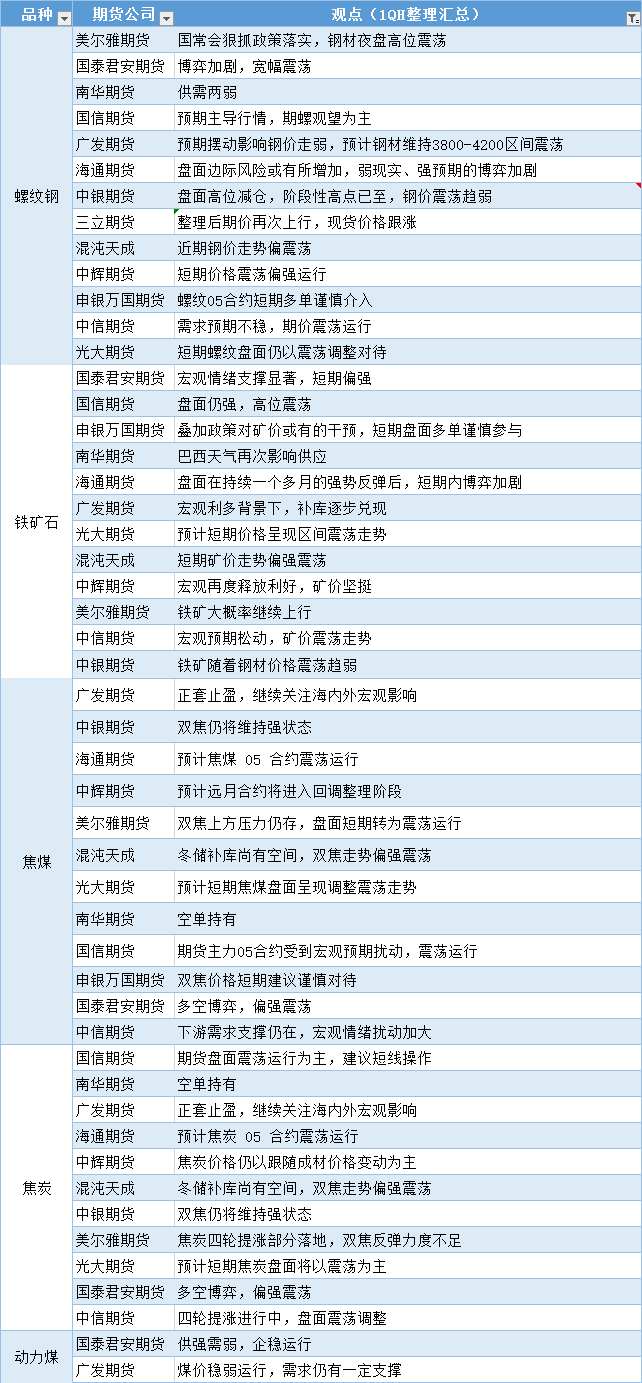 汇通财经APP讯——期货公司观点汇总一张图:12月22日黑色系(螺纹钢、焦煤、焦炭、铁矿石、动力煤等)