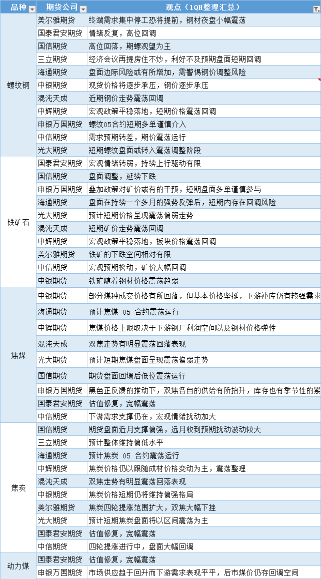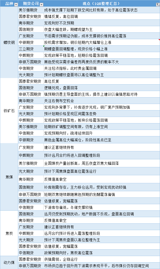汇通财经APP讯——期货公司观点汇总一张图:12月19日黑色系(螺纹钢、焦煤、焦炭、铁矿石、动力煤等)