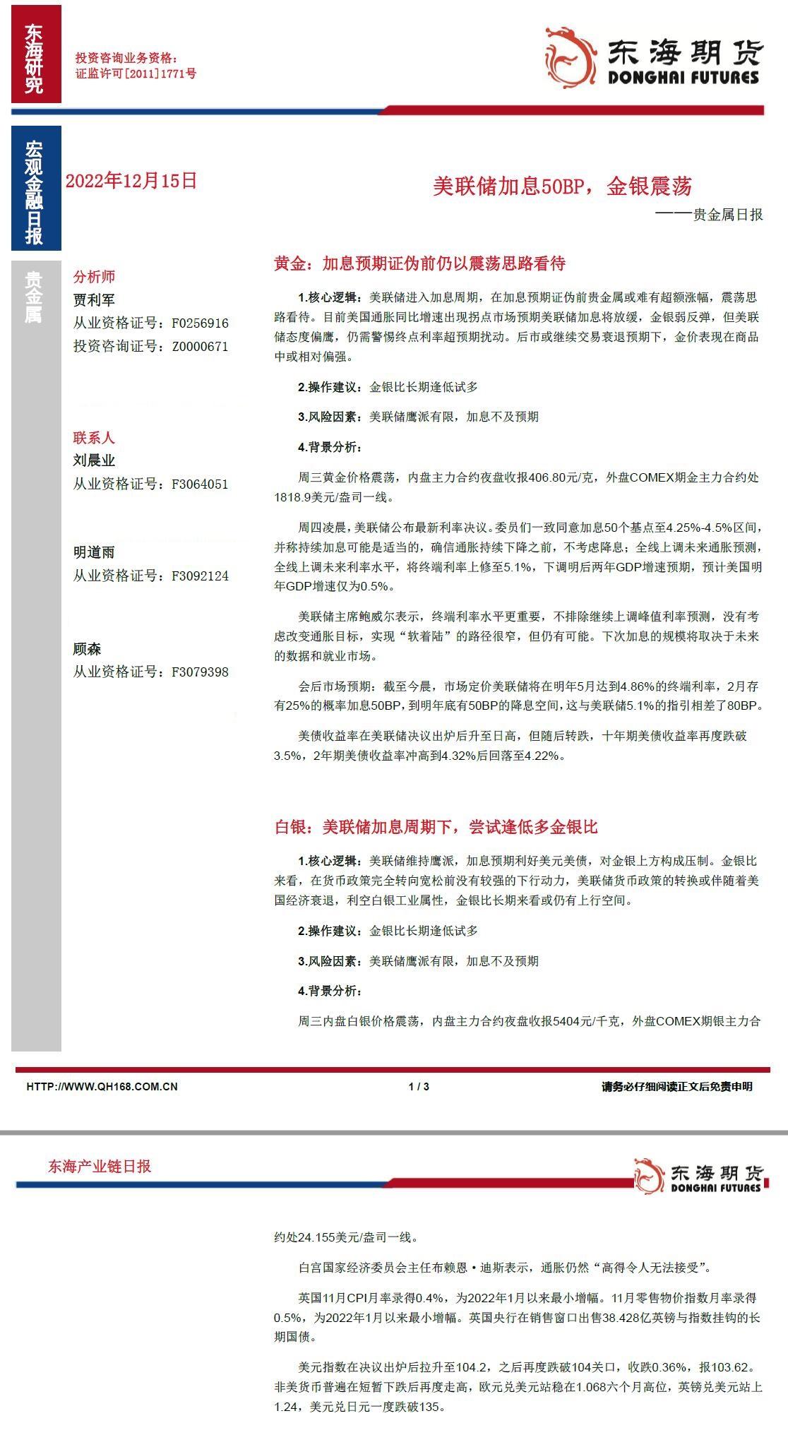 汇通财经APP讯——黄金核心逻辑:美联储进入加息周期,在加息预期证伪前贵金属或难有超额涨幅,震荡思路看待。目前美国通胀同比增速出现拐点市场预期美联储加息将放缓金银弱反弹,但美联储态度偏鹰,仍需警惕终点...