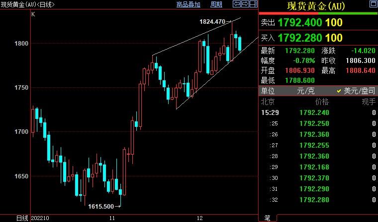 汇通财经APP讯——周四(12月15日)亚洲时段,现货黄金震荡走弱,一度创两日新低至1789.47美元/盎司,美联储加息的同时暗示明年会有多次加息,美联储主席鲍维尔的讲话也偏向鹰派,对金价打压明显,再...