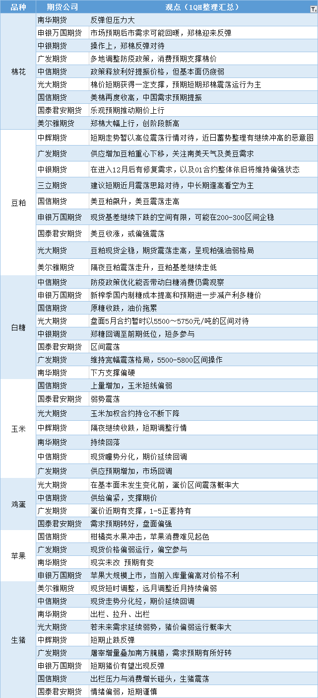 汇通财经APP讯——期货公司观点汇总一张图:12月7日农产品(棉花、豆粕、白糖、玉米、鸡蛋、生猪等)