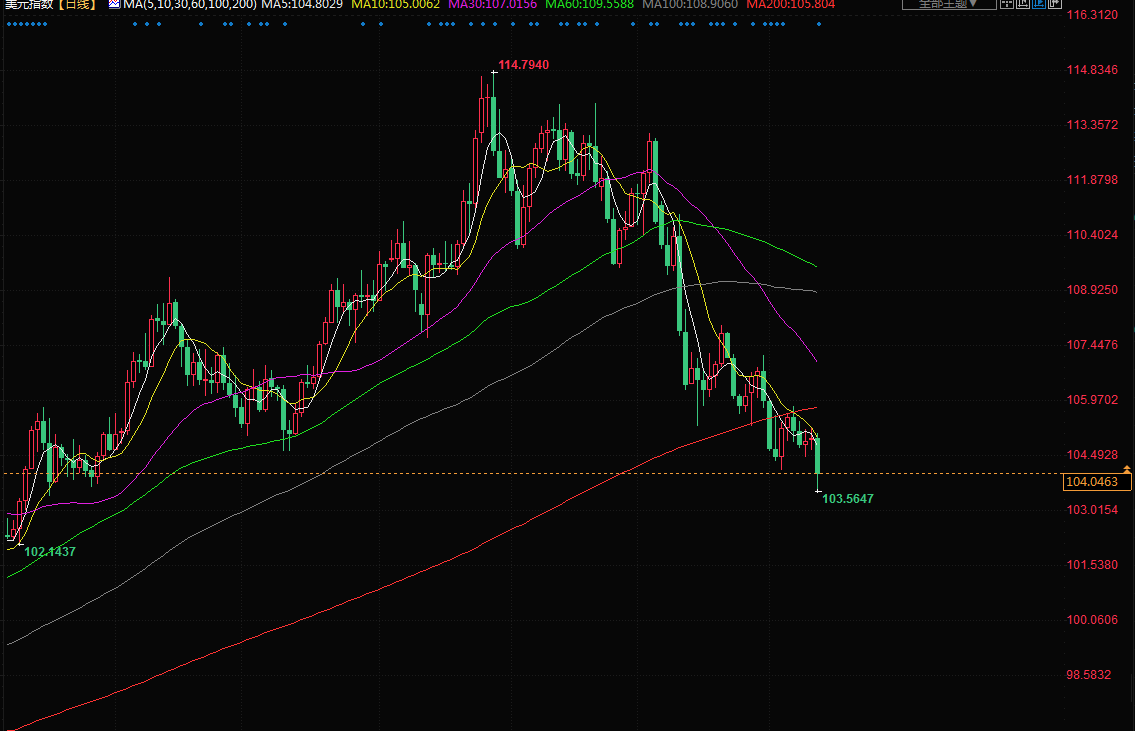 美元指数周二大跌,此前数据显示,11月美国核心消费物价升幅低于预期,加强了美联储将放缓加息步伐的预期。瑞穗银行分析师Robert Yawger说:“没有人真的认为这个数字会低于预期,这可能是一个有利于需求的事件,使市场出现买盘。”