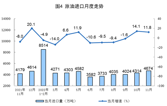 进口数据来源于海关总署,其中2022年11月份数据为快讯数据。