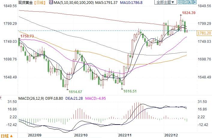 北京时间12月16日11:20,现货黄金报1781.20美元/盎司