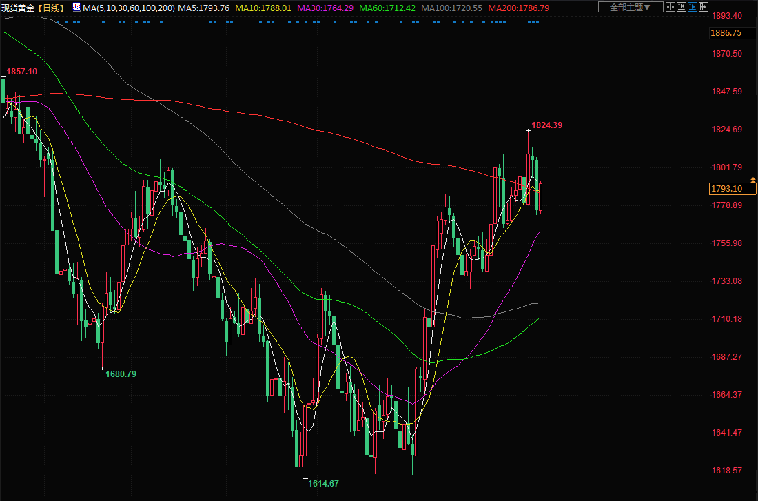 德国商业银行预计,在美联储本轮加息周期明确结束之前,黄金会向每盎司1750美元回落,并预计到2023年底金价会升至1850美元。