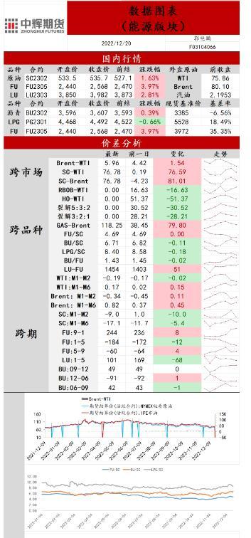 供应端:据美国能源信息署最新数据显示,截止2022年12月15日当周,包括战略储备在内的美国原油库存总量80640万桶,比前一周上升548.3万桶;美国商业原油库存42412.9万桶,比前一周上升1023.1万桶;战略原油库存量38227.1万桶,比上一周下降474.8万桶;美国汽油库存总量22358.3万桶,比前一周上升449.6万桶。商业原油库存比去年同期低0.97%,比过去五年同期低6.54%;汽油库存比去年同期低2.29%,比过去五年同期低约2.52%;馏分油库存比去年同期低2.90%,比过去五年同期低8.06%。