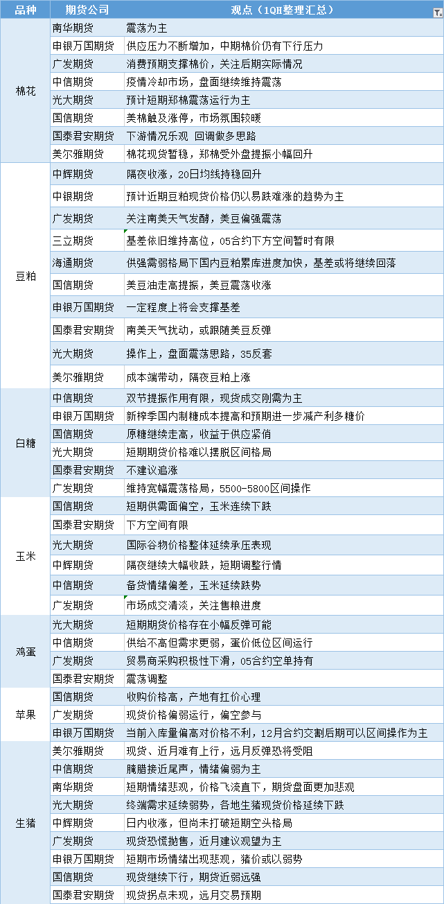期货公司观点汇总一张图:12月21日农产品(棉花、豆粕、白糖、玉米、鸡蛋、生猪等) Dec 21,2022 汇通财经APP讯——期货公司观点汇总一张图:12月21日农产品(棉花、豆粕、白糖、玉米、鸡蛋、生猪等)