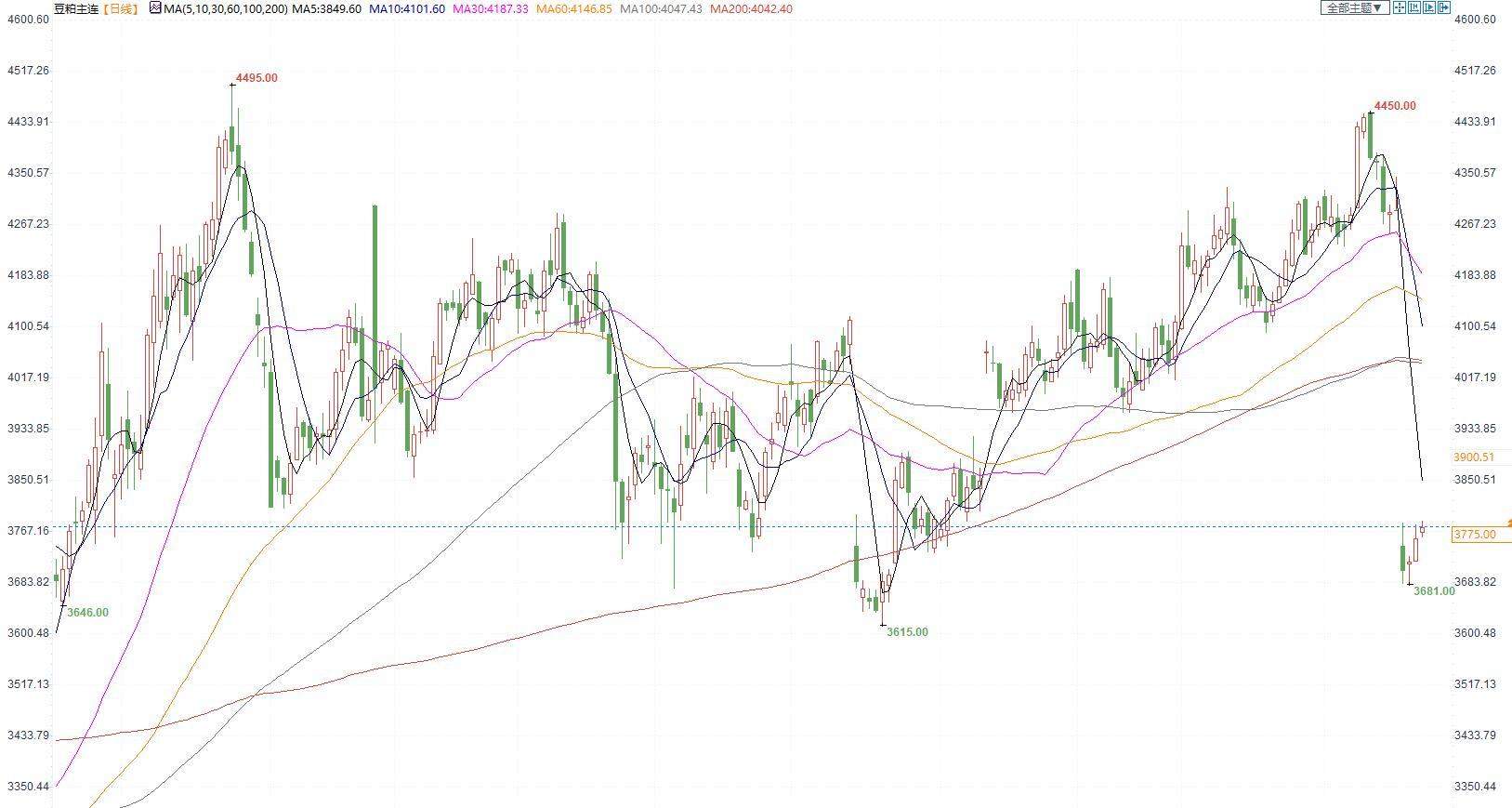 豆粕2305合约日内涨0.53%,收盘价3775元/吨,现货张家港43%蛋白豆粕4600元/吨