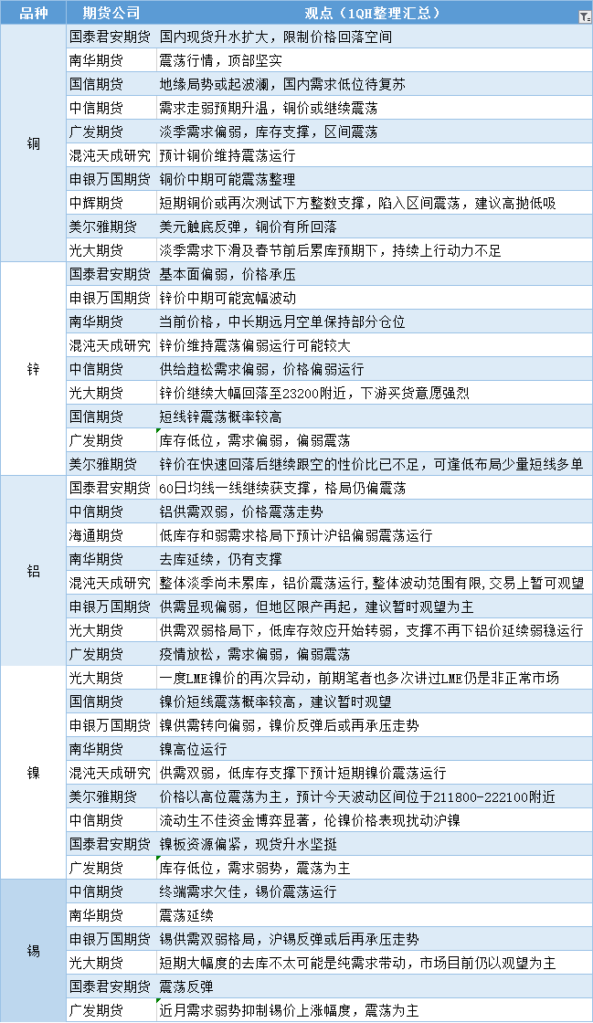 标题:期货公司观点汇总一张图:12月23日有色系(铜、锌、铝、镍、锡等)