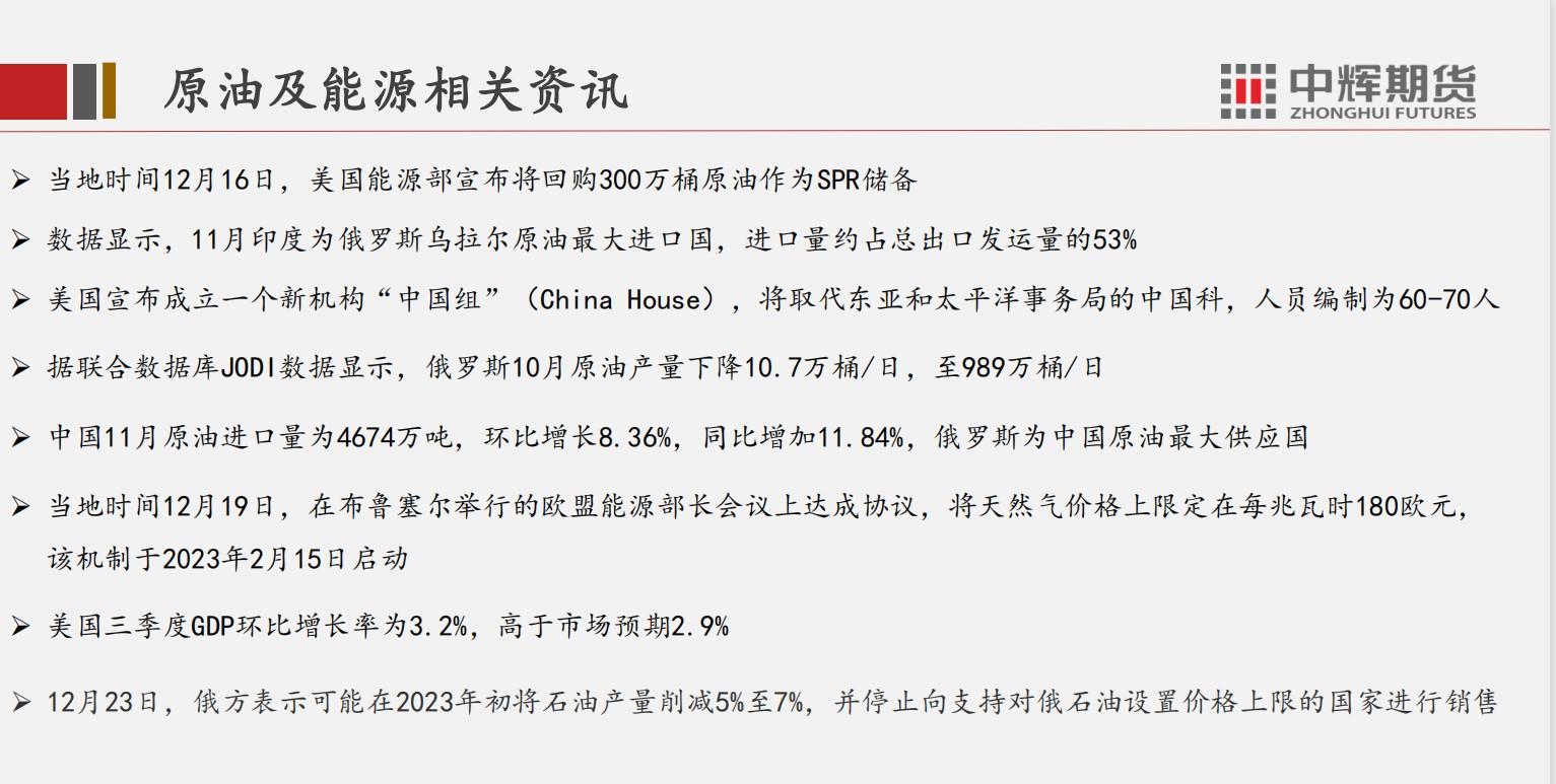 中辉期货原油周报:俄罗斯反制裁,原油供给有下降预期 Dec 26,2022 汇通财经APP讯——中辉期货发布原油周报,称俄罗斯反制裁,原油供给有下降预期,需关注全球原油需求变化。中辉期货公司授权文本由“专注期货开户交易及专业行情分析资讯网站”:【一期货 www.1qh.cn】转发