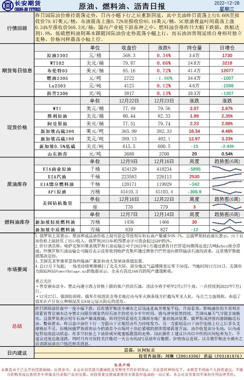 长安期货原油早评:价格将震荡,建议短差操作 Dec 28,2022 汇通财经APP讯——12月28日,长安期货发布原油早评,认为原油将震荡,建议短差操作。长安期货公司授权文本由“专注期货开户交易及专业行情分析资讯网站”:【一期货 www.1qh.cn】转发