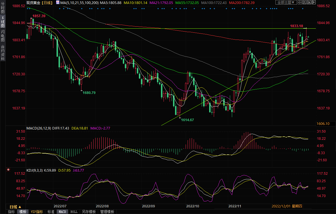Sevens Report分析师周二表示:“黄金仍保持在几个月高点以下,如果2023年美元走弱的逆向想法成真(有理由相信会是这样),那么在我们开始新的一年时,黄金将有一个积极的催化剂。”