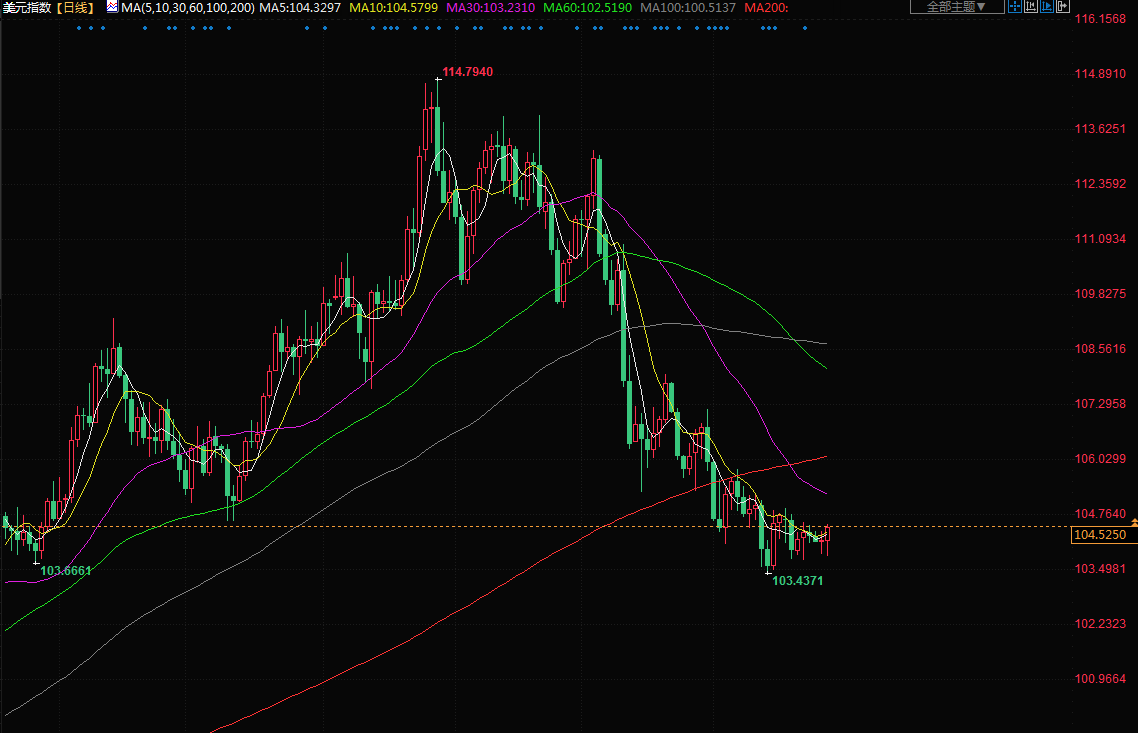 美元指数周三上涨0.202%至104.420。两周前,当美联储放缓加息步伐时,美元指数创下了103.44的六个月低点。美元兑日元触及一周高点,受美债收益率跳升和投资者预期亚洲经济增长将因新冠防控措施放松而反弹提振。