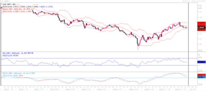 周三(12月28日),英镑兑美元继续勉强守护在1.20上方,全日最后收盘于1.2020附近。近期,世界各主要大国相继宣布将不再公布新冠病毒感染数据,防疫进入与病毒共存的新阶段。值得注意的是,围绕新冠病毒的积极新闻头条再次引发了鹰派对美联储的担忧,并在近期又推高了美国国债收益率,这也帮助美元指数近期得以在下滑中守住在了近期的低点104附近。美元的回稳,也就造就了英镑的下跌。从日线图上观察,在1.2000心理关口附近,英镑兑美元似乎暂时抑制了英镑兑美元的下行,随机指标KDJ出现交叉,MACD绿色动能柱似乎在收敛,说明英镑的空头意愿并不是太强烈。继续密切关注1.20-1.18区域的支撑性,若最终跌穿该 价格区域,则英镑弱势尽显。相反,若能撑持在上述区域,后市反弹可期。