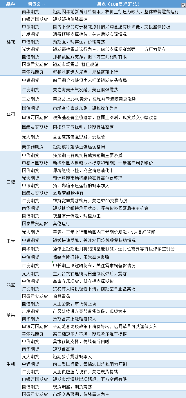 期货公司观点汇总一张图:12月29日农产品(棉花、豆粕、白糖、玉米、鸡蛋、生猪等) Dec 29,2022 汇通财经APP讯——期货公司观点汇总一张图:12月29日农产品(棉花、豆粕、白糖、玉米、鸡蛋、生猪等)