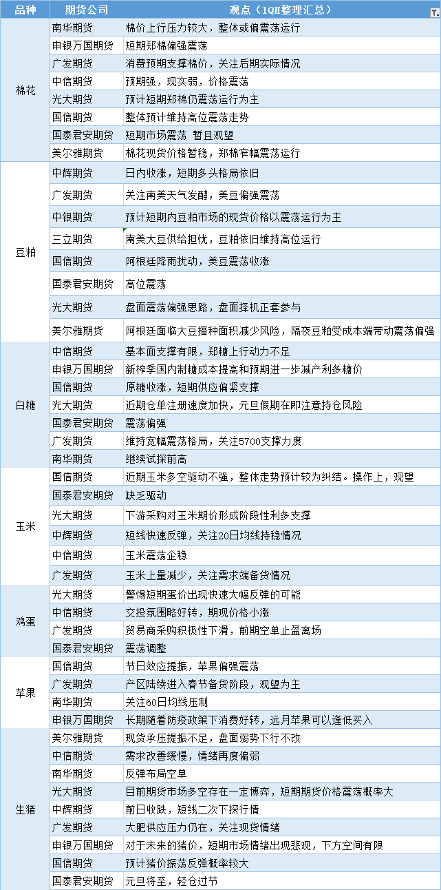 期货公司观点汇总一张图:12月30日农产品(棉花、豆粕、白糖、玉米、鸡蛋、生猪等) Dec 30,2022 汇通财经APP讯——期货公司观点汇总一张图:12月30日农产品(棉花、豆粕、白糖、玉米、鸡蛋、生猪等)