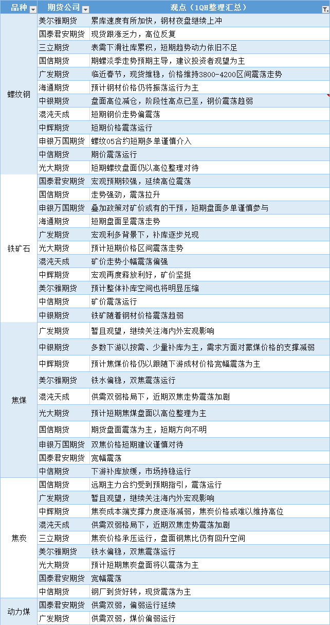 期货公司观点汇总一张图:12月30日黑色系(螺纹钢、焦煤、焦炭、铁矿石、动力煤等) Dec 30,2022 汇通财经APP讯——期货公司观点汇总一张图:12月30日黑色系(螺纹钢、焦煤、焦炭、铁矿石、动力煤等)